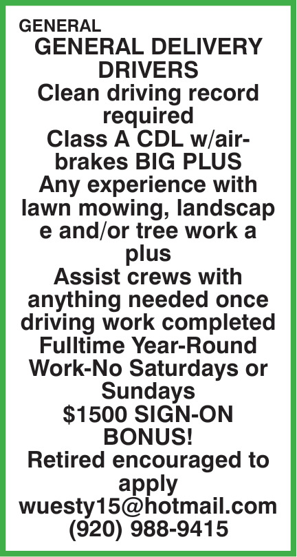 Genral Delivery Drivers Jobs Openings in Watertown, WI