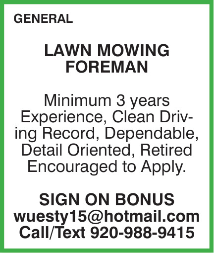 Lawn Mowing Foreman Job Opening in Watertown, WI